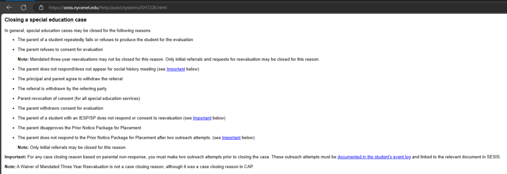 https://bhmlawgroup.com/2022/12/12/is-it-legal-to-backdate-a-contract/ ↩︎ - SESIS NYCENET.EDU, Last revised: February 5, 2013 “Closing a special education case.” https://sesis.nycenet.edu/help/assist/systems/SH7226.html ↩︎